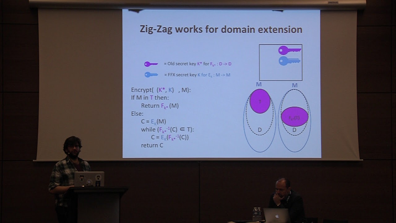 Abstract:Assume that a symmetric encryption scheme has been deployed and used with a secret key. We later must change the encryption scheme in a way that preserves the ability to decrypt (a subset of) previously encrypted plaintexts. Frequent real-world examples are migrating from a token-based encryption system for credit-card numbers to a format-preserving encryption (FPE) scheme, or extending the message space of an already deployed FPE. The ciphertexts may be stored in systems for which it is not easy or not efficient to retrieve them (to re-encrypt the plaintext under the new scheme). We introduce methods for functionality-preserving modifications to encryption, focusing particularly on deterministic, length-preserving ciphers such as those used to perform format-preserving encryption. We provide a new technique, that we refer to as the Zig-Zag construction, that allows one to combine two ciphers using different domains in a way that results in a secure cipher on one domain. We explore its use in the two settings above, replacing token-based systems and extending message spaces. We develop appropriate security goals and prove security relative to them assuming the underlying ciphers are themselves secure as strong pseudorandom permutations.