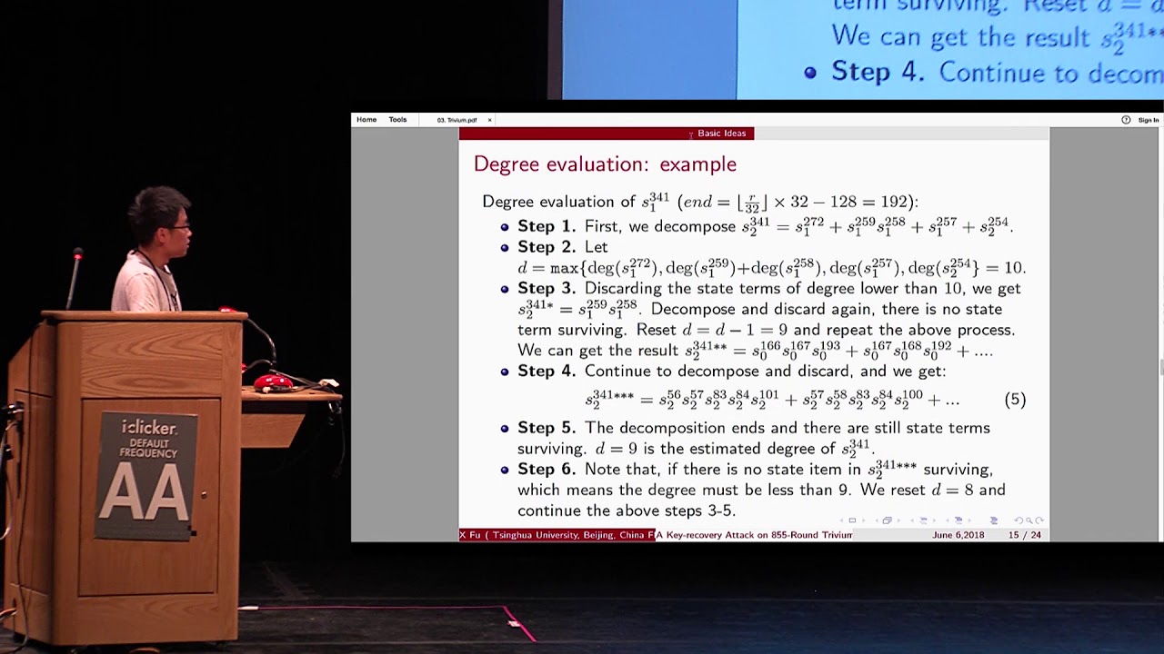 Slides: https://crypto.iacr.org/2018/slides/A%20Key-recovery%20Attack%20on%20855-round%20Trivium.pdf
