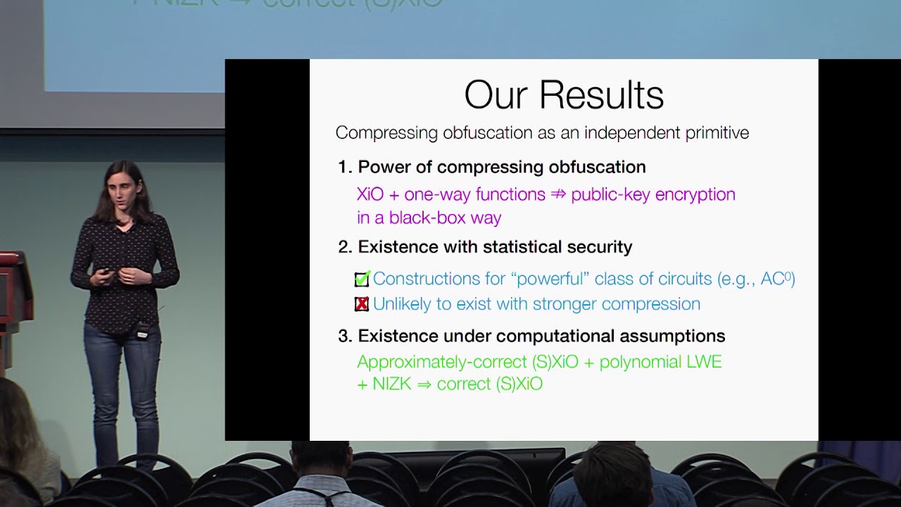 Slides: https://crypto.iacr.org/2018/slides/On%20the%20Complexity%20of%20Compressing%20Obfuscation.pdf
