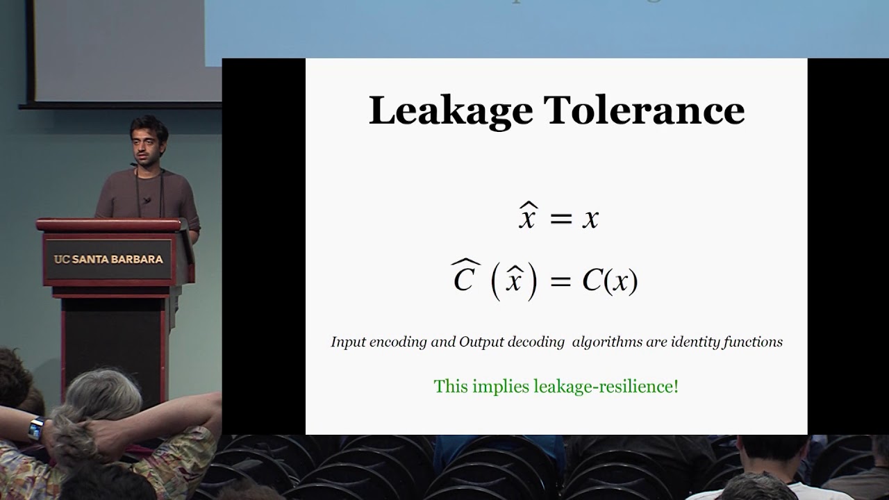 Abstract:We consider the problem of protecting general computations against constant-rate random leakage. That is, the computation is performed by a randomized boolean circuit that maps a randomly encoded input to a randomly encoded output, such that even if the value of every wire is independently leaked with some constant probability p > 0, the leakage reveals essentially nothing about the input. In this work we provide a conceptually simple, modular approach for solving the above problem, providing a simpler and self-contained alternative to previous constructions of Ajtai (STOC 2011) and Andrychowicz et al.\ (Eurocrypt 2016). We also obtain several extensions and generalizations of this result. In particular, we show that for every leakage probability p<1, there is a finite basis \mathbb{B} such that leakage-resilient computation with leakage probability p can be realized using circuits over the basis \mathbb{B}. We obtain similar positive results for the stronger notion of leakage tolerance, where the input is not encoded, but the leakage from the entire computation can be simulated given random p'-leakage of input values alone, for any p<p'<1. Finally, we complement this by a negative result, showing that for every basis \mathbb{B} there is some leakage probability p<1 such that for any p'<1, leakage tolerance as above cannot be achieved in general.